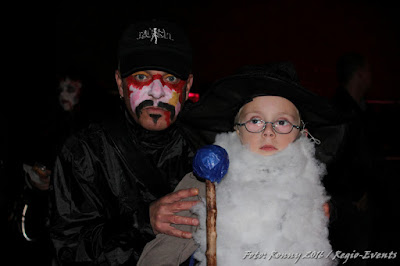groot aantal interessante Halloween karakters tegen verdeeld over de hele wijk. In groepjes gingen de